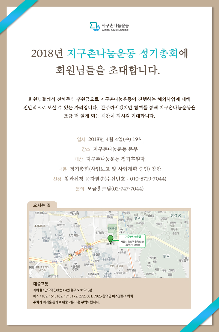 공지 2018 지구촌나눔운동 정기총회에 초대합니다.