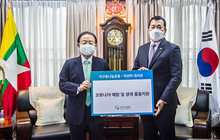 지구촌나눔운동은 18일 최근 국내 코로나19 확산에 따른 예방 및 방지를 위해 미얀마 대사관에 코로나19 예방 물품을 전달했다고 밝혔다.